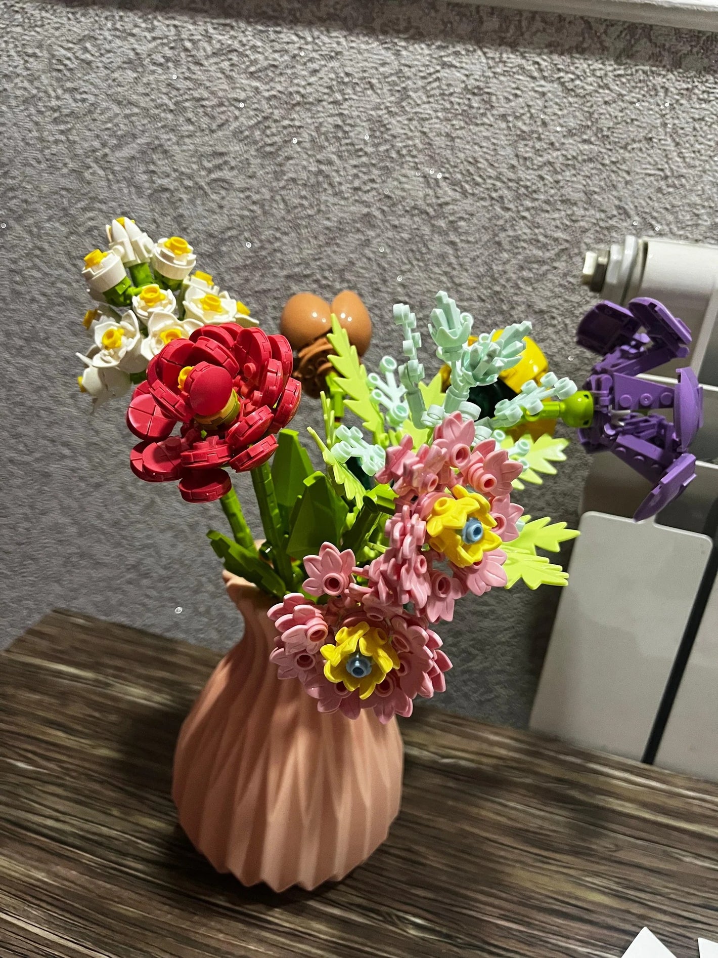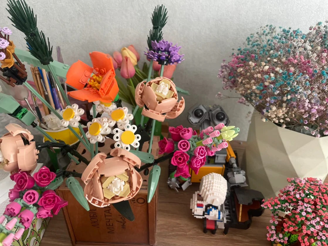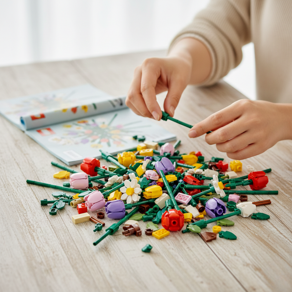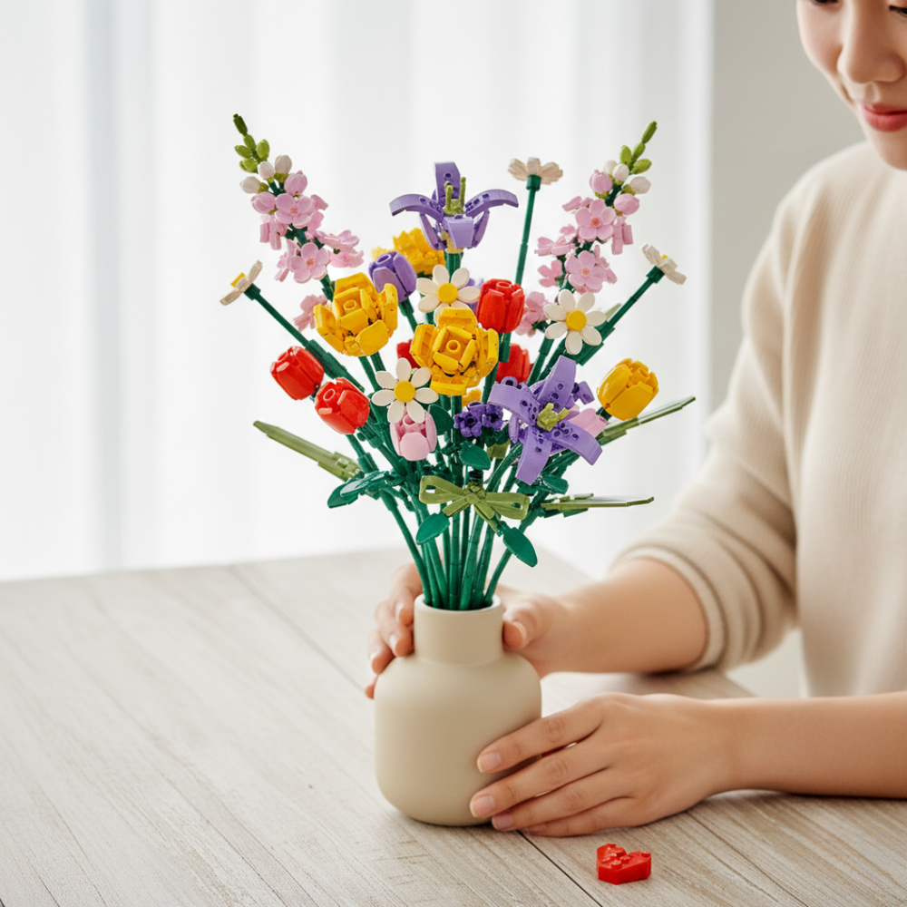 LEGO çiçekleri, tamamen LEGO parçalarından oluşan ve elle birleştirilen dekoratif çiçek setleridir. Gerçek çiçeklerin estetiğini kalıcı bir sanat eserine dönüştürürler. Her parça tek tek monte edilir, böylece sonunda eşsiz ve solmayan bir buket ortaya çıkar.